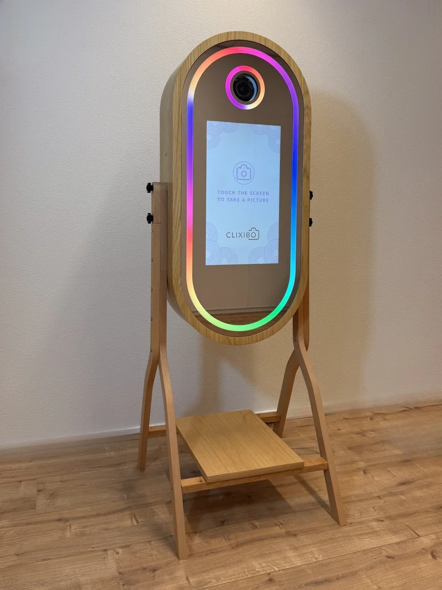 Unsere Spiegel Fotobox kombiniert elegantes Design mit interaktiver Technologie. Mit einem 40-Zoll-Touchscreen-Spiegel in einem stilvollen Holzrahmen nimmt sie atemberaubende Fotos auf und schafft gleichzeitig ein magisches Gästeerlebnis.