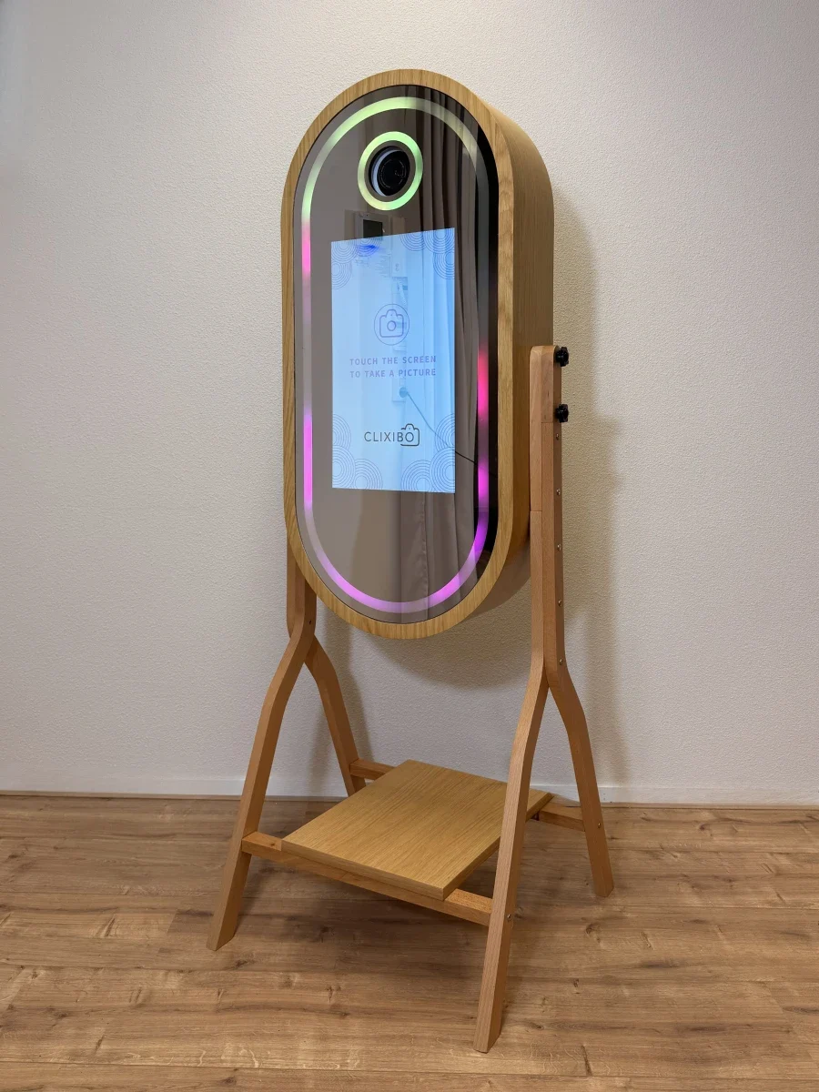 Ein echter Blickfang. Gebaut, um zu beeindrucken. Unsere Spiegelkabine vereint High-End-Design mit unvergesslicher Gästeinteraktion. Mit einem 40-Zoll-Touchscreen-Spiegel in voller Größe, eingefasst in elegantes Holz, bietet diese Kabine mehr als nur Fotos – sie liefert ein immersives, interaktives Erlebnis. Von luxuriösen Hochzeiten bis hin zu Markenaktivierungen zieht die Spiegelkabine Aufmerksamkeit auf sich und sorgt für sofortiges Engagement. Die Einrichtung ist einfach und schnell, ohne dass technische Vorkenntnisse erforderlich sind. Mit anpassbaren Animationen, digitalen Signaturen und makelloser Fotoqualität ist dies die ideale Lösung für Profis, die ihre Veranstaltungen aufwerten, sich von der Konkurrenz abheben und Momente schaffen möchten, die viral gehen.